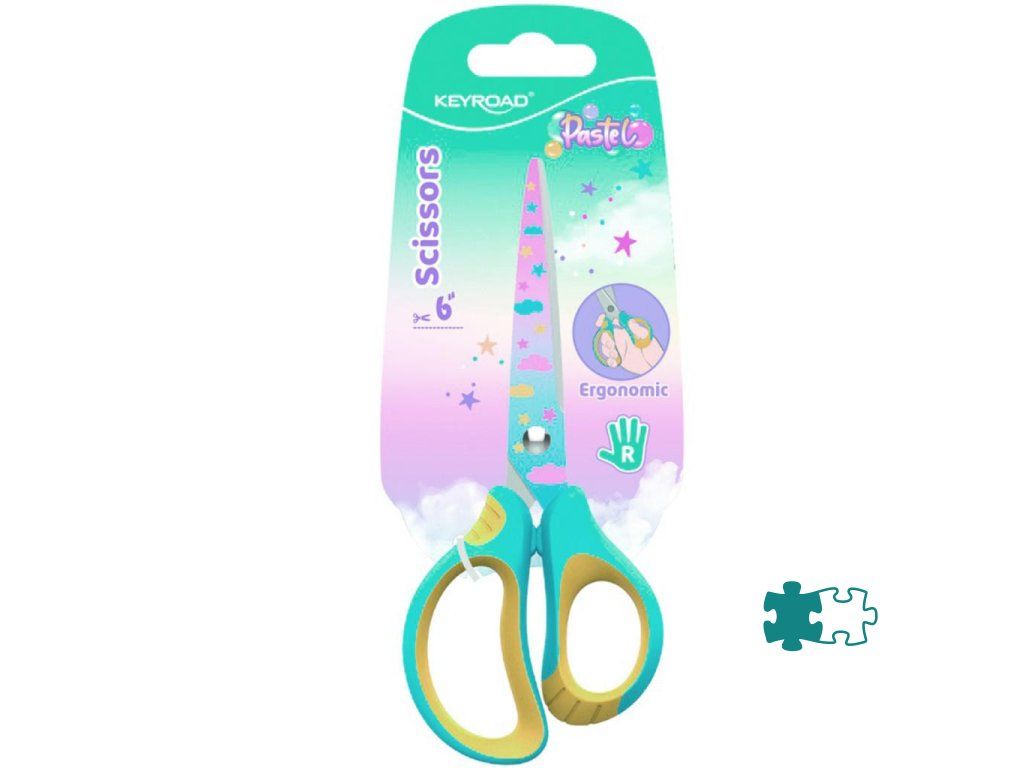 Nožnice KEYROAD Pastel Deco ergonomické, 15,5 cm, blister, mix farieb
