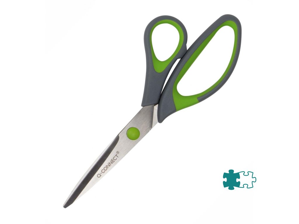 Ergonomické nožnice Q-CONNECT s vynikajúcou kvalitou rezu. Vďaka zahnutým mäkkým rukovätiam je práca s nimi pohodlná a ľahká. Dvojfarebná rukoväť (sivá / zelená). Dĺžka: 20 cm.Dodatočné parametre