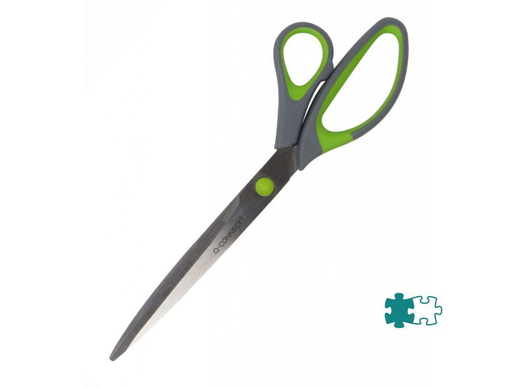 Ergonomické nožnice Q-CONNECT s vynikajúcou kvalitou rezu. Vďaka zahnutým mäkkým rukovätiam je práca s nimi pohodlná a ľahká. Dvojfarebná rukoväť (sivá / zelená). Dĺžka: 25,5 cm.Dodatočné parametre