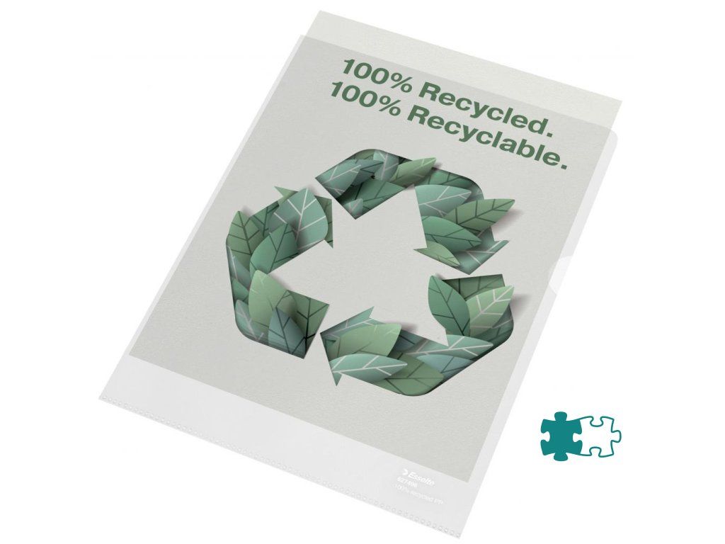 Ekologicky šetrný a opakovateľne recyklovateľný obal „L“ vyrobený v Európe zo 100% recyklovaného PP. Formát A4 s horným a pravým otváraním, ideálny na použitie v kancelárii, domácej kancelárii a v škole. Prvotriedny reliéfny povrch. Vnútorný mikrofi lm proti kopírovaniu bráni odtlačeniu textu z papiera na plast. Materiál bez obsahu kyselín chráni pred žltnutím papiera, preto je ideálny na dlhodobú archiváciu dôležitých dokumentov. Balený v 100% recyklovateľnej krabici z recyklovaného papiera.Dodatočné parametre