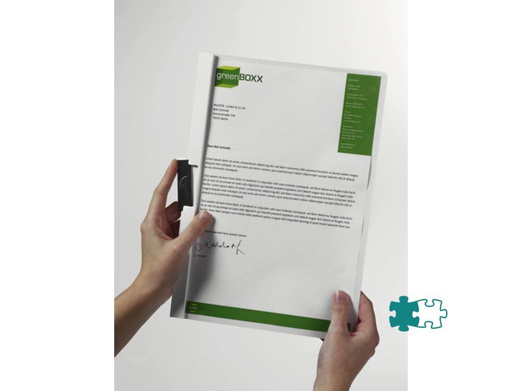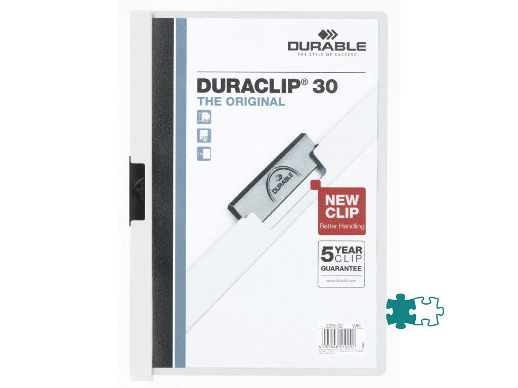 Obal vyvinutý spoločnosťou DURABLE pre viazanie nedierovaných listov. Materiál z PVC s unikátnym kovovým klipom, ktorý sa prispôsobí vloženému počtu listov a priehľadnou prednou stranou. Ideálny na prezentácie, ponuky, správy, poznámky na konferencie, semináre a pod. Formát A4. Kapacita 1-30 listov. Väčšie balenie 25 ks.Kapacita: 1-30 listov