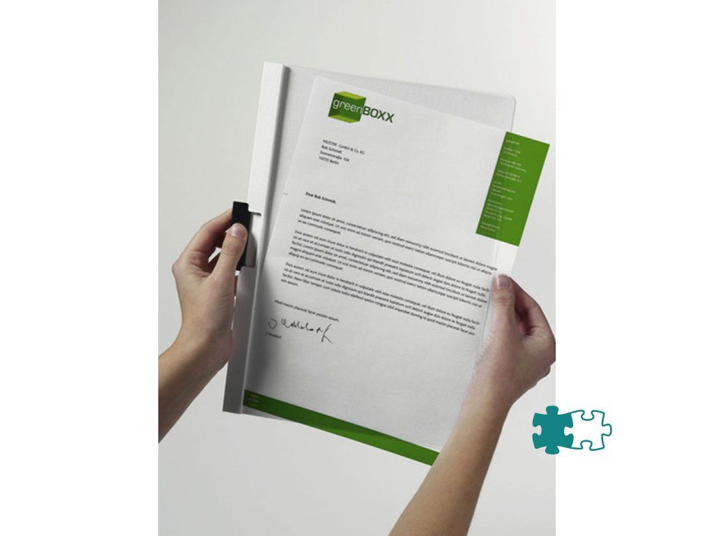 Obal vyvinutý spoločnosťou DURABLE pre viazanie nedierovaných listov. Materiál z PVC s unikátnym kovovým klipom, ktorý sa prispôsobí vloženému počtu listov a priehľadnou prednou stranou. Ideálny na prezentácie, ponuky, správy, poznámky na konferencie, semináre a pod. Formát A4. Kapacita 1-60 listov. Väčšie balenie 25 ks.Kapacita: 1-60 listov