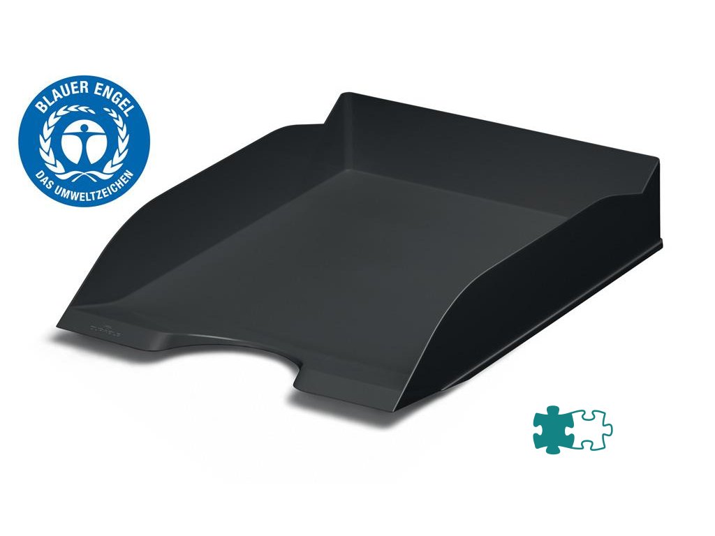 Praktický kancelársky odkladač na listy a iné písomné dokumenty vyrobený z recyklovaného plastu v kvalite Blue Angel.Stohovateľný buď zvisle alebo odsadene. Predná strana zabraňuje vykĺznutiu dokumentov. Pre formáty A4 až C4.