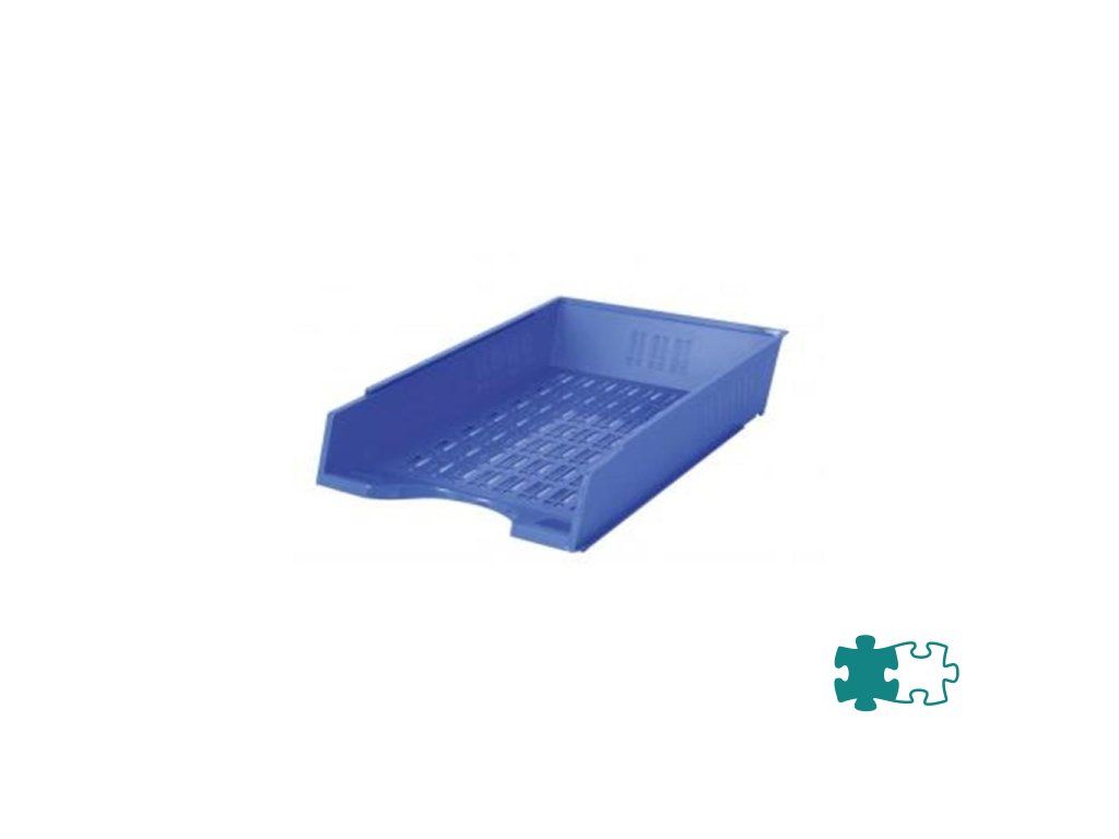Plastový odkladač na papiere formátu A4 s možnosťou stohovania dozadu. Úprava nepriehľadná. Väčšie balenie 10 ks.Farba: modrá