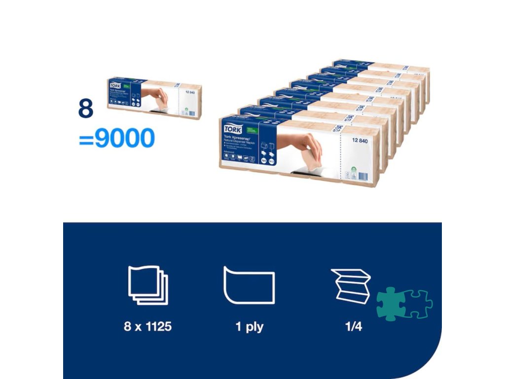 Tork Xpressnap® servítky do zásobníka sú výborné pre samoobslužné reštaurácie.Tento systém vám pomôže znížiť spotrebu servítok o 25 % v porovnaní s tradičnými zásobníkmi servítok, nakoľko hostia sa dotknú len tej servítky, ktorú použijú. Tork Xpressnap® natural 1-vrstvové servítky do zásobníka sú vyrobené zo 100 % recyklovaných vlákien.Dĺžka rozloženého útržku: 21.30 cm