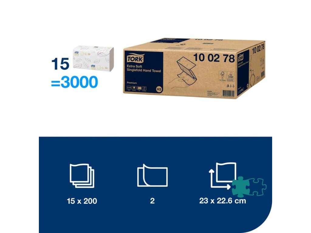 Potešte svojich hostí jemnými prémiovými Tork Singlefold papierovými utierkami, ktoré sú hebké k rukám s pocitom vysokej kvality. Utierky sú vhodné v náročnom prostredí do zásobníka Tork Singlefold na papierové utierky. Pomáha udržať spotrebu pod kontrolou a propagovať dobrú hygienu vďaka spoľahlivému dávkovaniu po útržkoch.Farba: biela