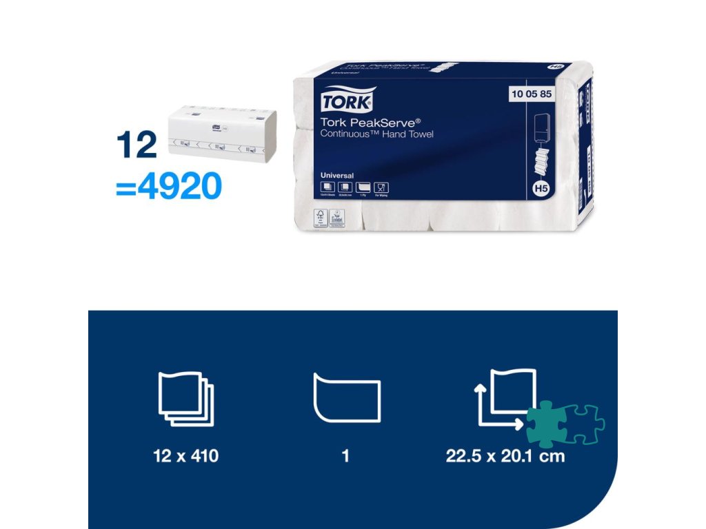 Systém nepretržitého dávkovania utierok dávkuje utierky plynule, dokonca aj medzi jednotlivými baleniami, kvoli lepšej plynulosti prevádzky v toaletách a umyvárňach, bez prestojov pre hostí. Stlačené balenia utierok na ruky zvýši kapacitu a znížený čas potrebný na údržbu. Ekonomické balenie a dávkovanie po útržkoch znižujú spotrebu.Kartóny Carry pack s prvkami Tork Easy Handling, s utierkami na ruky stlačenými o 50 % pre efektívnu manipuláciu, prepravu a uskladnenie.