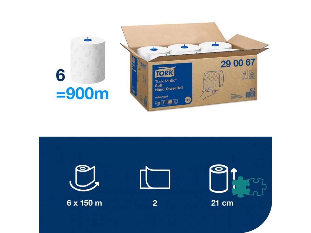 Papierové utierky v rolke 2-vrstv. TORK Matic biele jemné H1, návin 150 m (6 ks)