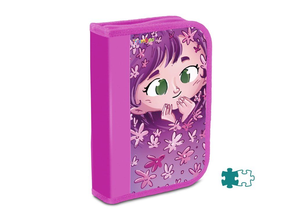 Jednokrídlový peračník s príslušenstvom, mix 10 motívov. Obsahuje 17 dielov: guma, strúhadlo, pravítko, 6 farbičiek, ceruzka, 6 fixiek, guľôčkové pero. Materiál: PVC, zapínanie na zips. Má jednu priehradku a jednu deliacu priehradku s ďalším vreckom. Farba: mix farieb a vzorov.Dodatočné parametre