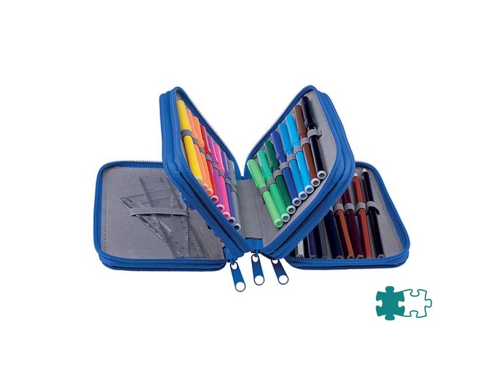 Školský peračník s výbavou v 3 priehradkách. Sada obsahuje: pravítka, 3 perá, ceruzka, guma, strúhadlo, 16 fixiek, 16 pasteliek. Mix motívov.Dodatočné parametre