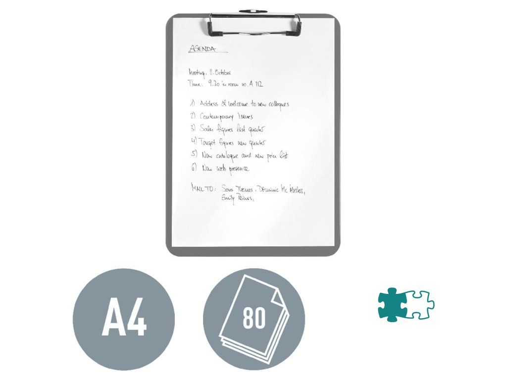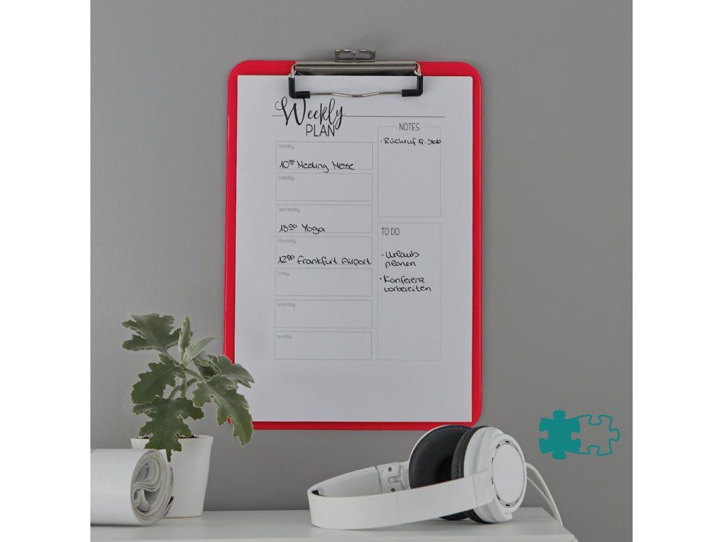 Pevná písacia podložka A4 na každodenné použitie v sviežej farbe WOW s dvojfarebným efektom. Silná kovová spona na uchytenie až 75 listov, háčik na zavesenie. Materiál polystyrol. Väčšie balenie 10 ks. Farba červená.Dodatočné parametre