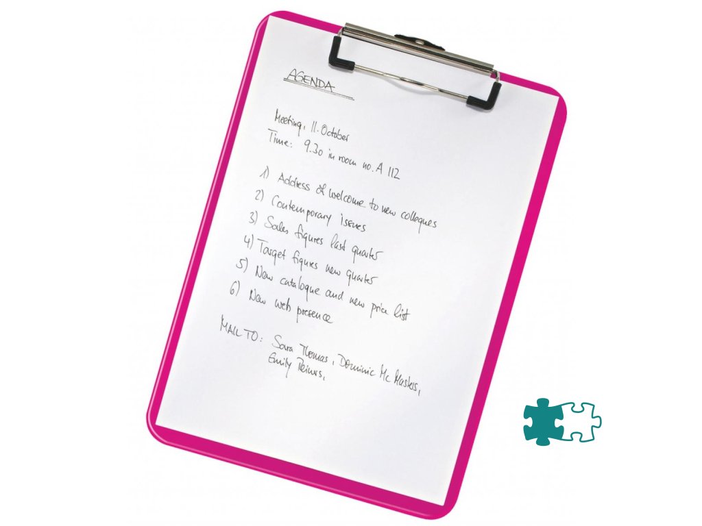 Pevná písacia podložka A4 na každodenné použitie v sviežich farbách WOW s dvojfarebným efektom. Silná kovová spona na uchytenie až 80 listov, háčik na zavesenie. Materiál polystyrol. Väčšie balenie 10 ks. Farba metalická ružová.Dodatočné parametre