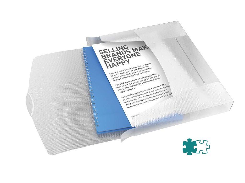 Kvalitný box na spisy vo sviežich farbách so štvorčekovaným dizajnom VIVIDA. Vyrobený z priehľadného polypropylénu hrúbky 0,7 mm. Ideálny pre bezpečný prenos objemnejších dokumentov.- štýlové a ergonomické uzatváranie na gumičku pre bezpečný prenos