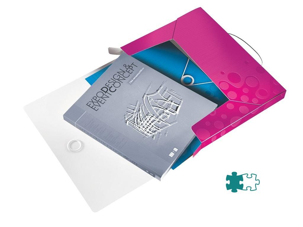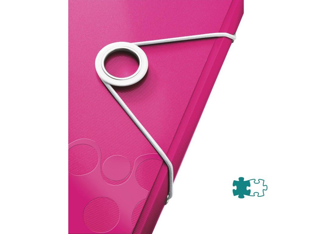 Nepriehľadný polypropylénový box na prenos objemnejších spisov, cenníkov, katalógov a pod. do formátu A4. V dizajne rady WOW v žiarivých farbách. Praktické zatváranie gumičkou na kovový krúžok. Rozmery (v × h × š) 330 × 250 × 37 mm. Väčšie balenie 5 ks. Farba metalická ružová.Dodatočné parametre