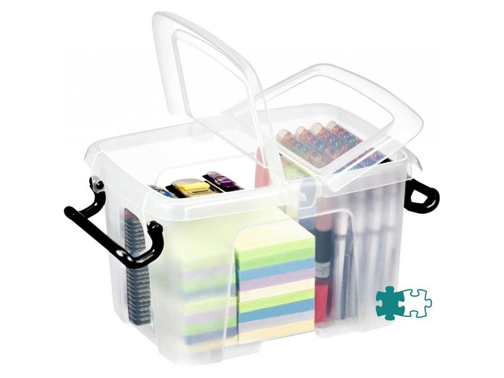 Transparentný robustný multifunkčný box z plastu s vekom, stohovateľný pri nepoužívaní. Motýlie veko na otváranie z 2 strán z dôvodu ľahšieho prístupu, 2 pevné rukoväte slúžiace na prenos boxu a súčasne ako klip na pevné uzatvorenie boxu. Materiál recyklovaný PP. Objem 6 litrov, romery 30 × 22,5 × 18,3 cm (dĺžka, šírka, výška). Na tento produkt platí predĺžená záruka 5 rokov.Dodatočné parametre