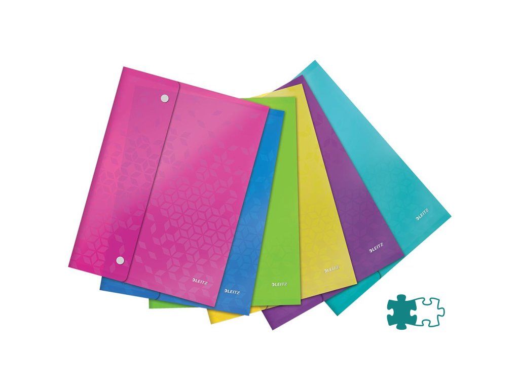 Obaly na dokumenty bez multiperforácie v dizajne radu Leitz WOW. Jednoduché uzatváranie vďaka plastovým cvočkom. Kapacita 120 listov papiera formátu A4. Vyrobené z embosovanej PP fólie. Balenie 6 ks v mixe farieb (ľadová modrá, metalická modrá, metalická zelená, metalická oranžová, metalická ružová a purpurová).Dodatočné parametre