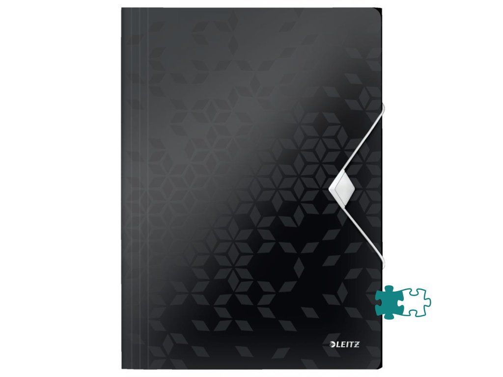Trojchlopňový obal na dokumenty do formátu A4 z polypropylénu. V dizajne rady WOW v žiarivých farbách. Uzatváranie uchytením na gumičku. Kapacita 150 listov. Väčšie balenie 10 ks. Farba čierna.Dodatočné parametre