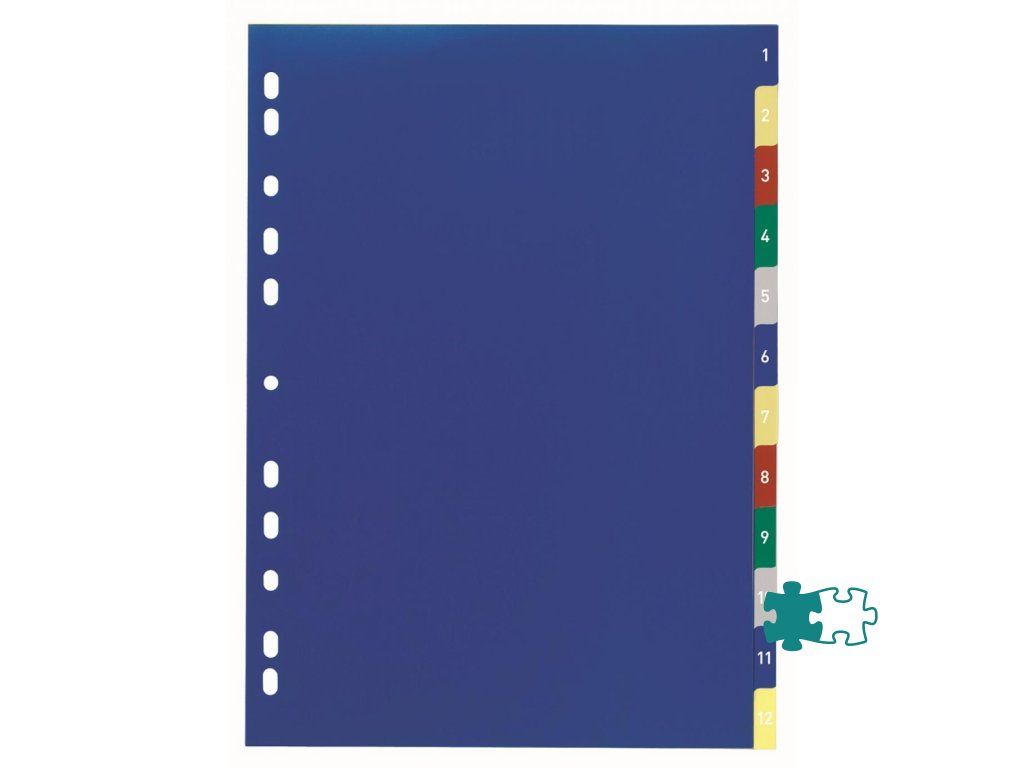 Farebný číselný rozraďovač vyrobený zo zosilneného plastu s eurodierovaním, popisovateľný papierový titulný list na ľahkú orientáciu v dokumentoch. Výsledný dokument pôsobí upravene a reprezentatívne. Väčšie balenie 20 sád.Formát: A4