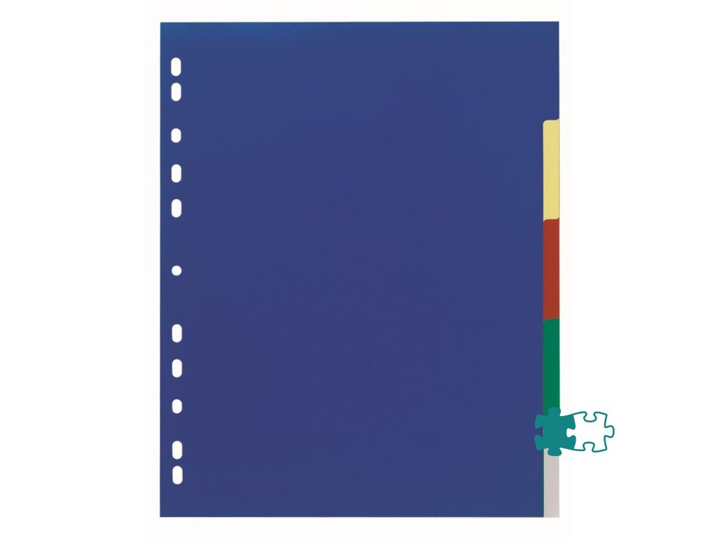 Farebný rozraďovač s 5 oddielmi vyrobený zo zosilneného plastu. Formát A4 maxi, eurodierovanie, popisovateľný papierový titulný list na ľahkú orientáciu v dokumentoch. Výsledný dokument pôsobí upravene a reprezentatívne. Väčšie balenie 20 sád.Farba: 5 farieb