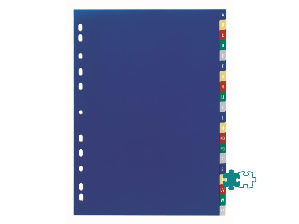 Farebný abecedný rozraďovač vyrobený zo zosilneného plastu s eurodierovaním, popisovateľný papierový titulný list na ľahkú orientáciu v dokumentoch. Výsledný dokument pôsobí upravene a reprezentatívne. Väčšie balenie 20 sád.Formát: A4