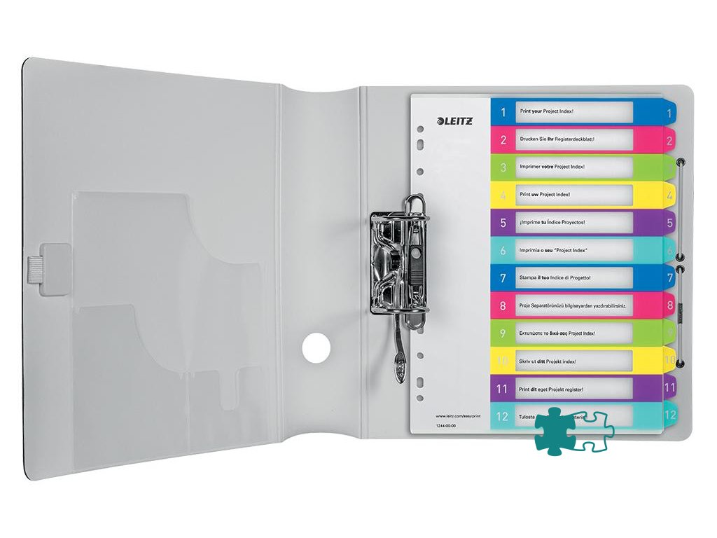 Opakovane použiteľný a extra odolný plastový číselný rozraďovač 1 - 12 v žiarivých farebných kombináciách s univerzálnou perforáciou. Materiál odolný polypropylén hrúbky 0,3 mm. Formát A4 maxi. Možnosť potlače na upravenie podľa vlastných potrieb, predloha stiahnuteľná zdarma na www.esselte.com/ easyprint.Dodatočné parametre