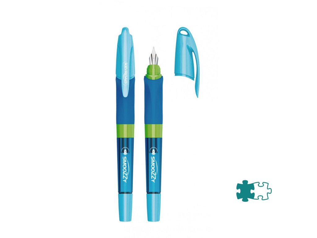 Písacie plniace pero KEYROAD Smozzy, ideálne na učenie písania v škole aj doma. Má ergonomický, pogumovaný profil rukoväte, vhodné pre pravákov aj ľavákov. Vysoko kvalitný hrot z nehrdzavejúcej ocele hrúbka čiary písania: 0,7 mm. Umývateľný modrý atrament. Balenie: blister. Farba: mix farieb.Dodatočné parametre