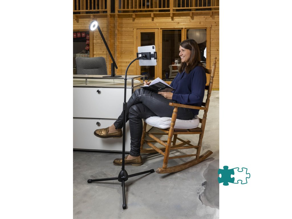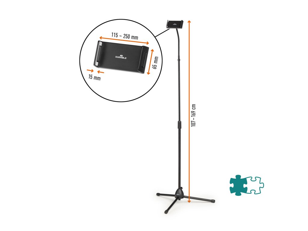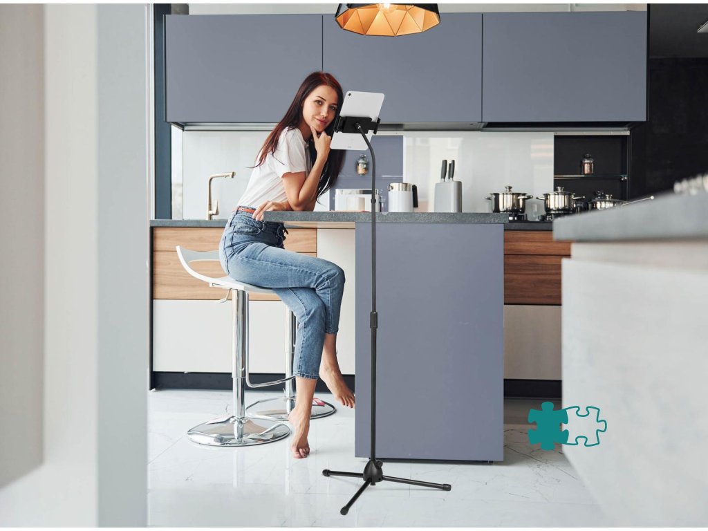 Podlahový stojan na tablety a mobilné telefóny od 4,7-13`. Stojan s teleskopickou tyčou a flexibilným ramenom pre plynulé otáčanie a nastavenie výšky.