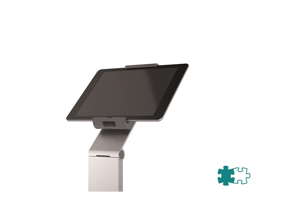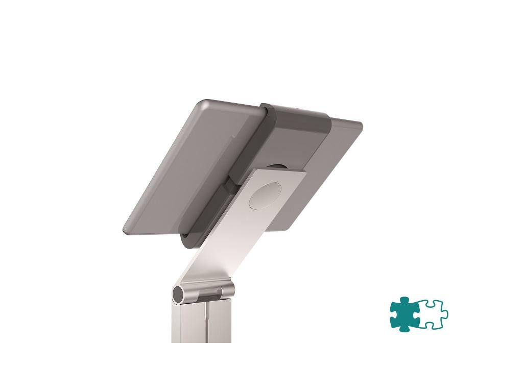Vysoko stabilný hliníkový podlahový stojan na tablety veľkosti 7 - 13`. Flexibilný uhol nastavenia sklonu ramena 0 - 88 stupňov, ochrana proti krádeži pomocou blokovacieho mechanizmu na úchytoch a s bezpečnostným slotom na základni na štandardný káblový zámok, kanál pre kábel s organizérom káblov, nastaviteľnom v celom rozsahu výšky. Dodávaný s USB káblom. Rozmery (š × v × h) 270 × 1215 × 270 mm.Dodatočné parametre