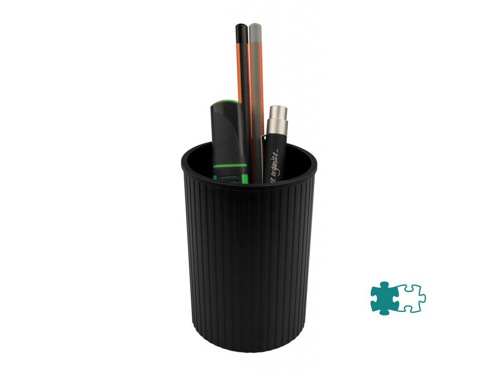 Pohárik na perá s penovou vložkou v dizajne rady Linear s prúžkami. Výška 108 mm. Priemer 74 mm.Farba: čierna