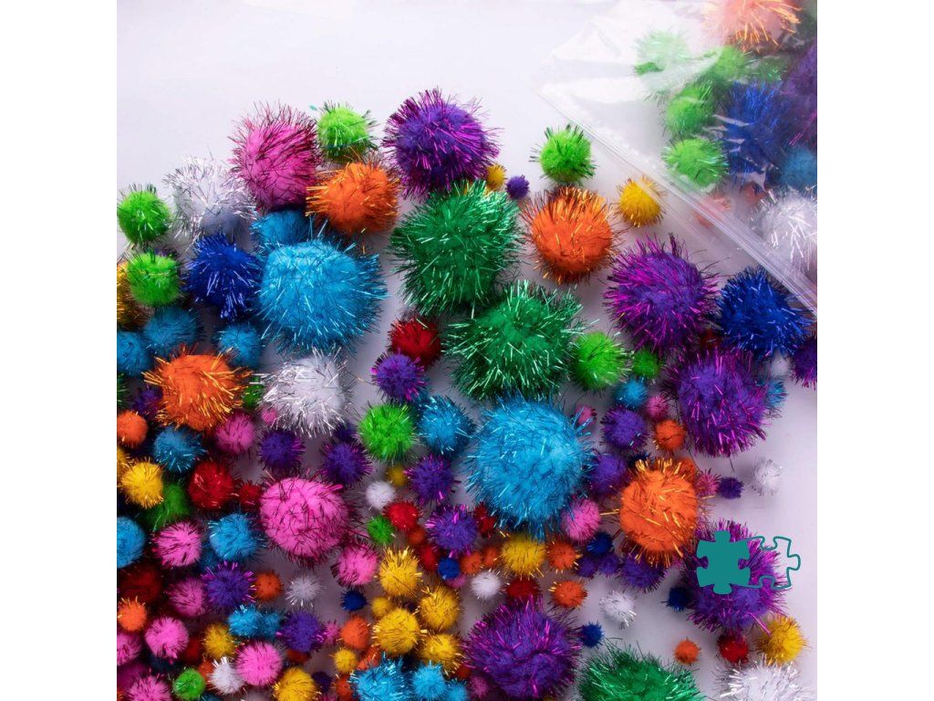 Pom-pom rôznych trblietavých farieb - MAXI formát
