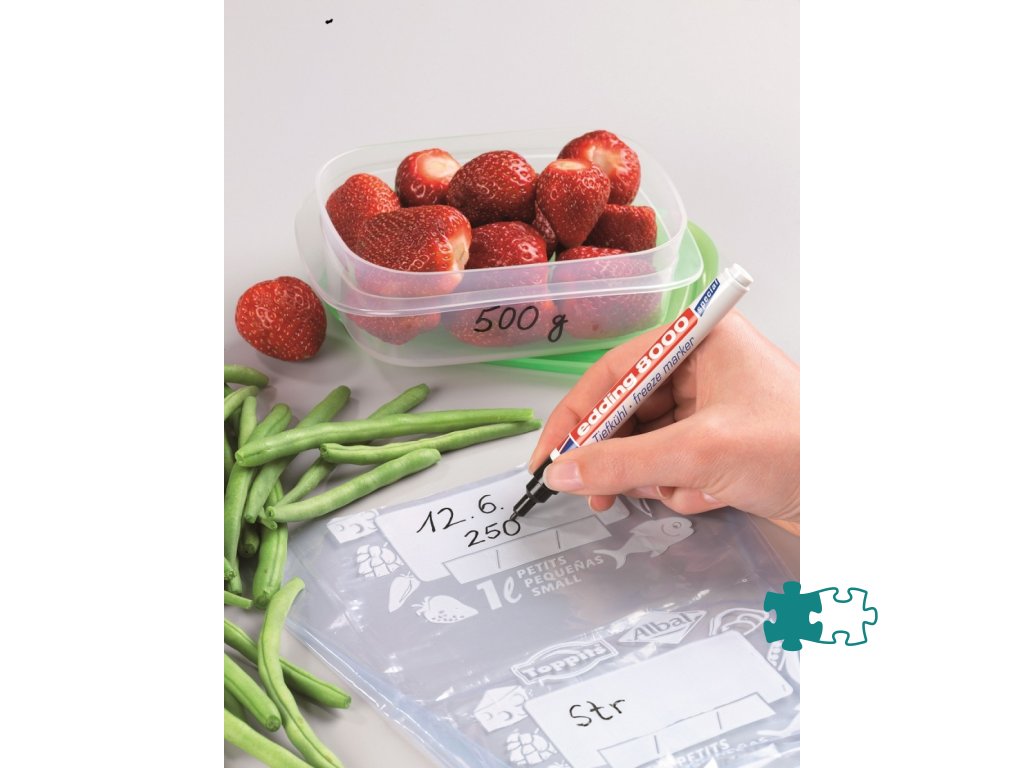 Popisovač edding 8000 freeze s permanentným rýchloschnúcim atramentom, odolným voči mrazu. Maximálne vhodný na označovanie a popisovanie obalov a dóz do zmrazeného prostredia. Hrot okrúhly, šírka stopy 1 mm.Dodatočné parametre