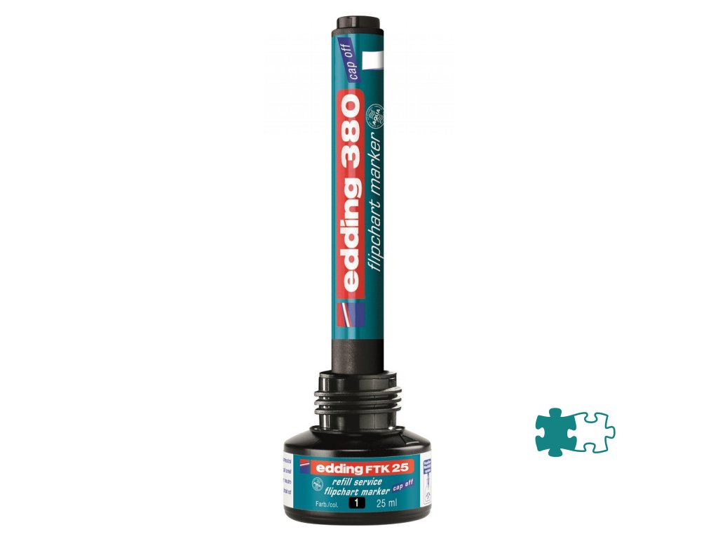 Popisovač s atramentom na vodnej báze a vlastnosťou Cap off, zabraňujúcou vysychaniu atramentu pri otvorenom hrote aj niekoľko dní. Na popisovanie flipchartových blokov a iných archov papiera. Opätovne naplniteľné atramentom FTK 25 (obj. kód ED625101), ktorý neprepíja na druhú stranu papiera. Hrot okrúhly, šírka stopy 1,5 - 3 mm. Väčšie balenie 10 ks.Farba: čierna