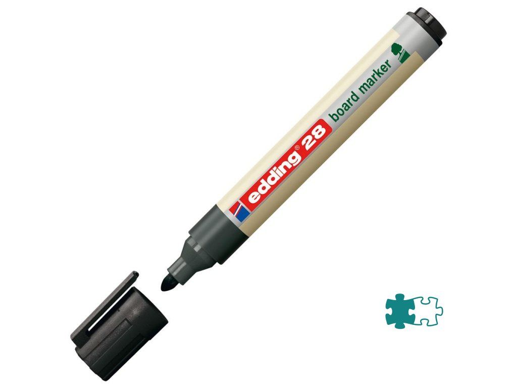 Popisovač na biele tabule, za sucha stierateľný prakticky zo všetkých neporóznych povrchov, ako je keramická úprava, melamín i sklo. Minimálne 80 % plastovej časti je vyrobených z recyklovaného materiálu. Okrúhly hrot, šírka stopy 1,5 - 3 mm. Rýchloschnúci, vodeodolný, slabo zapáchajúci atrament intenzívnej farby. Krátky čas vydrží neuzavretý bez vyschnutia. Väčšie balenie 10 ks.Farba: čierna
