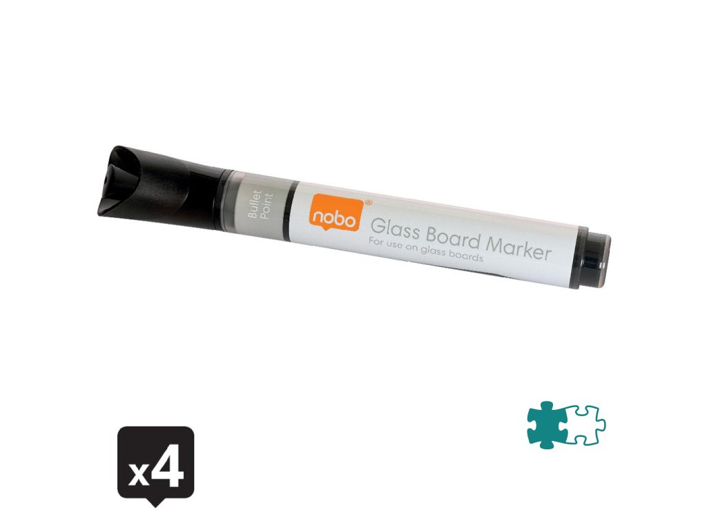 Popisovače Nobo na sklenené tabule s okrúhlym hrotom, balenie 4 ks, čierne