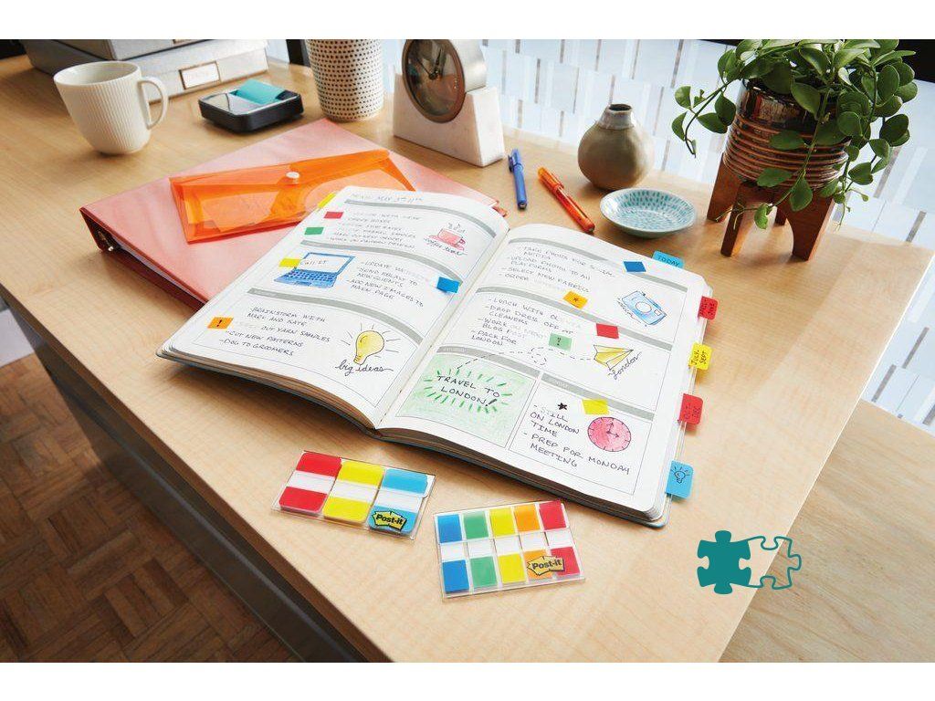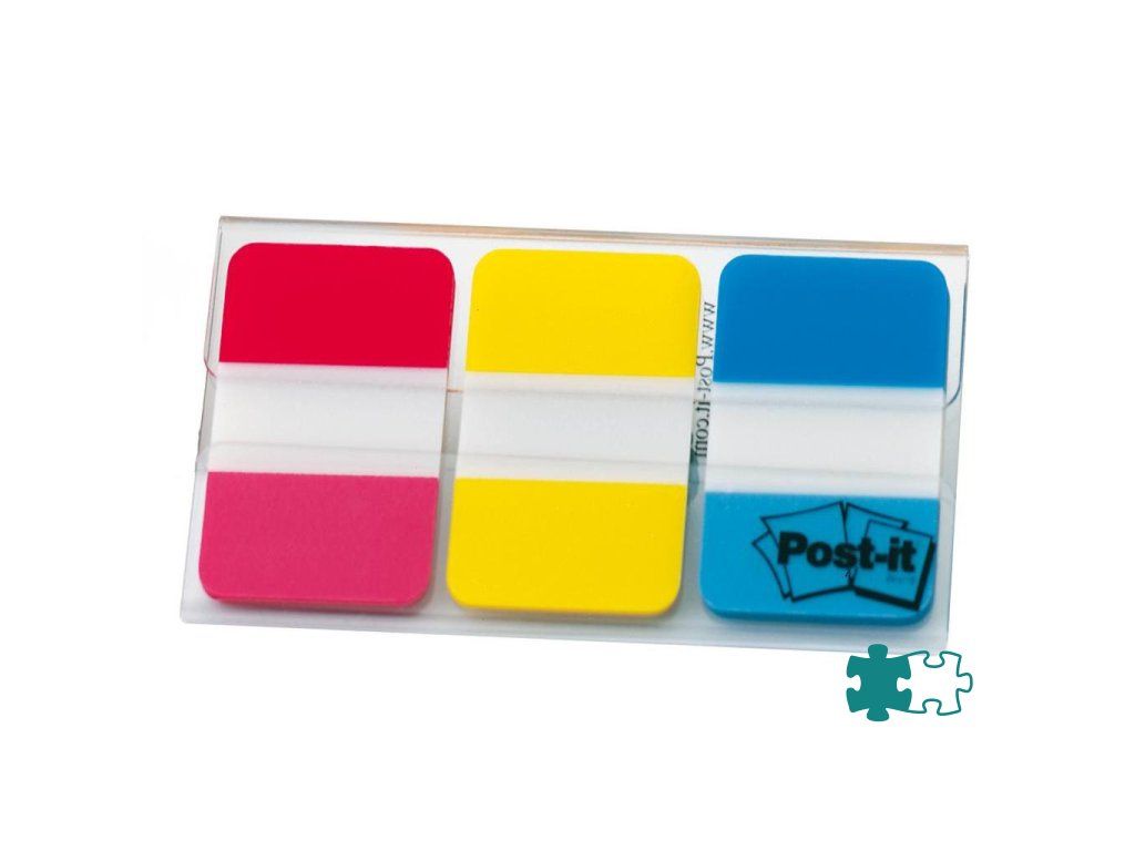 Plastové záložky s extra silnou priľnavosťou. Premiestniteľné, odstraniteľné a popisovateľné perom, ceruzkou alebo popisovačom. Rozmery 25 × 38 mm, v balení 3 × 22 ks záložiek. Klasické farby: modrá, červená a žltá.- Post-it® záložky pomáhajú vytvoriť poriadok jednoduchým rozdelením plánovačov, kalendárov a zložiek na samostatné časti.