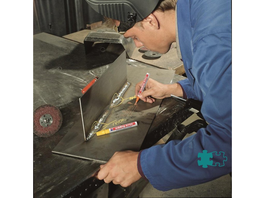 Priemyselný popisovač s hliníkovým obalom a vysoko permanentným pigmentovým atramentom s nepriehľadnou lakovou úpravou. Ideálny na mastné a zaprášené kovové povrchy. Hrot okrúhly, šírka stopy 2 - 4 mm. Väčšie balenie 10 ks.Farba: žltá