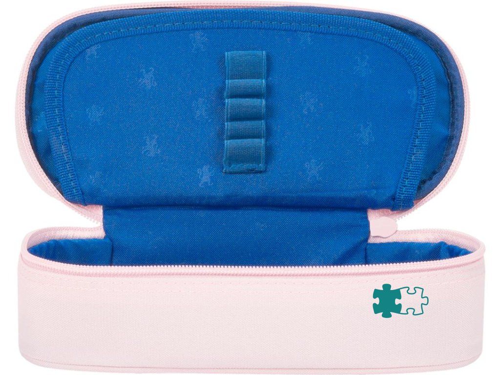Vodeodolná polyesterová tkanina, tmavo modrá podšívka s vyrazeným vzorom leva. Klopa s integrovaným vreckom a pútkami na pero. Hlavné vrecko na zips. Rozmery 23,5 x 8,5 x 5 cm.Dodatočné parametre