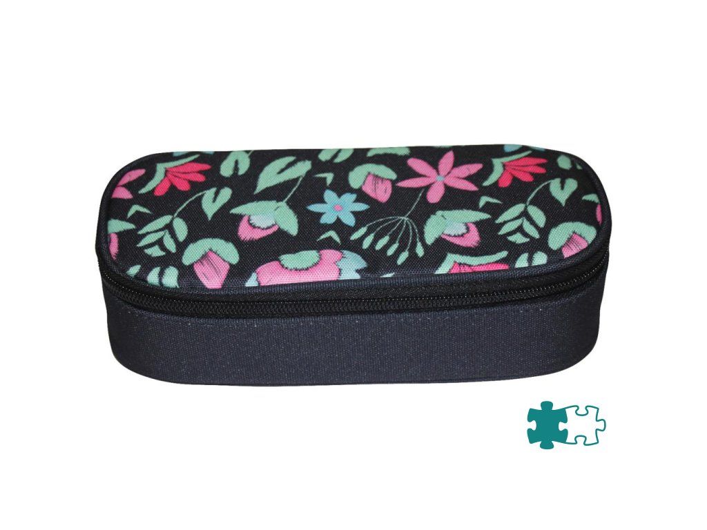 Oválny peračník na zips, 1 vnútorná chlopňa s pútkami na pero, bez náplne, materiál polyester, Š x V x H: 21 x 5,5 cm. Motív Srdce a Kvety.Dodatočné parametre