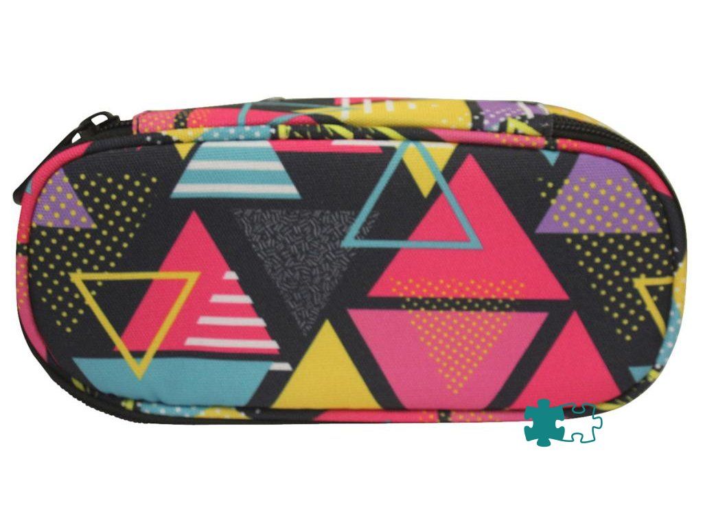 Oválny peračník na zips, 1 vnútorná chlopňa s pútkami na pero, bez náplne, materiál polyester. Rozmery: Š x V x H: 21 x 5,5 x 10,5 cm. Motív Trojuholník.Dodatočné parametre