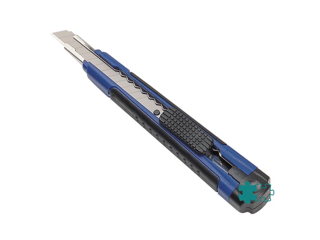 Protišmykový univerzálny rezač na rýchle a ostré rezy s odlamovacím nožom, kovovou čepeľou a aretáciou. Profi model stredný so šírkou čepele 9 mm má nôž rozdelený na 12 častí. Vďaka integrovanej funkcii odlamovania čepele v rukoväti budete mať vždy ostrú čepeľ. Rezač perfektne a bezpečne padne do ruky vďaka ergonomicky tvarovanej gumenej rukovätiModel je dodávaný s 1 nožom a s 2 náhradnými čepeľami navyše.Farba modrá.