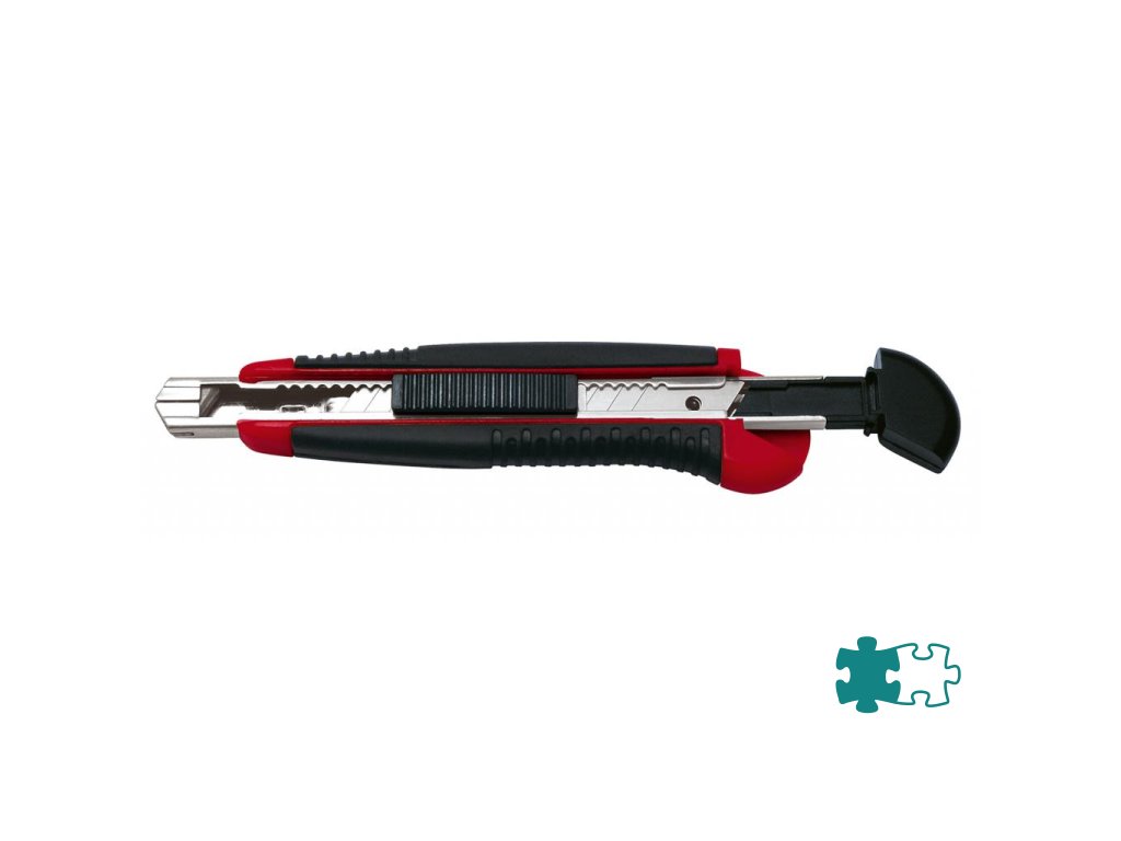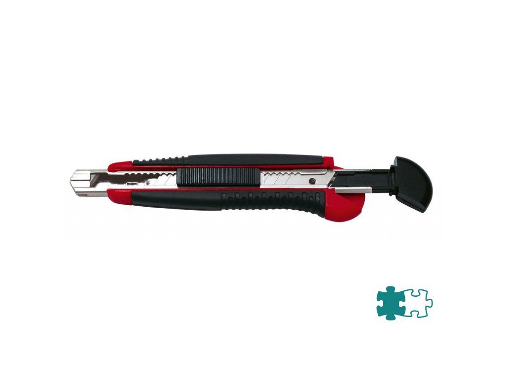 Robustný profesionálny rezač s gumeným vrúbkovaným úchytom, pevným celokovovým vedením noža a automatickým uzamknutím noža. Po vytiahnutí opotrebovaného noža sa zasunutím bežca nainštaluje z integrovaného zásobníka automaticky nôž nový. Šírka čepele 9 mm. V balení 6 náhradných čepiel. Schválené inštitútom TÜV. Farba čierna/červená.Šírka čepele: 9 mm