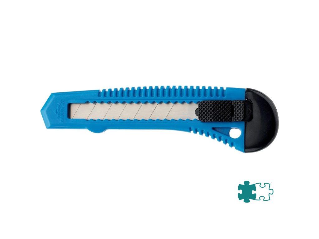 Plastový rezač, šírka čepele 18 mm. Farba čierna/modrá. Úprava plastová.Dodatočné parametre