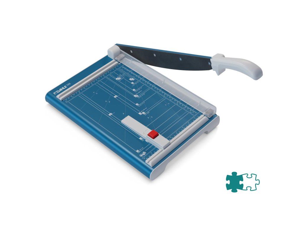 Rezačka z pevného oceľového plechu vhodná na rezanie papiera, kartónu, kože, plastu. Vrchný a spodný rovný nôž vyrobený z kvalitnej nožiarskej ocele Solingen, ručný prítlak s ochranu na prsty. Presná mierka v cm a DIN formátoch, zadný doraz, na spodnej časti výrezy na pohodlné prenášanie.Praktické zapustené rukoväte pre bezpečnú a jednoduchú prepravu