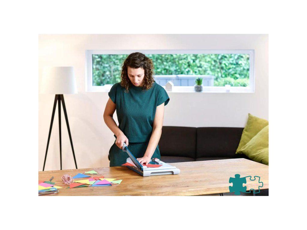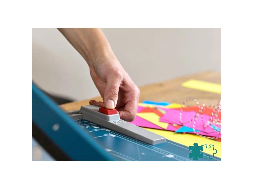 Kompaktná, protišmyková a presná rezačka z pevného oceľového plechu vhodná na rezanie papiera, kartónu, kože, plastu.Presná mierka v cm a DIN formátoch, zadný doraz, na spodnej časti výrezy na pohodlné prenášanie.