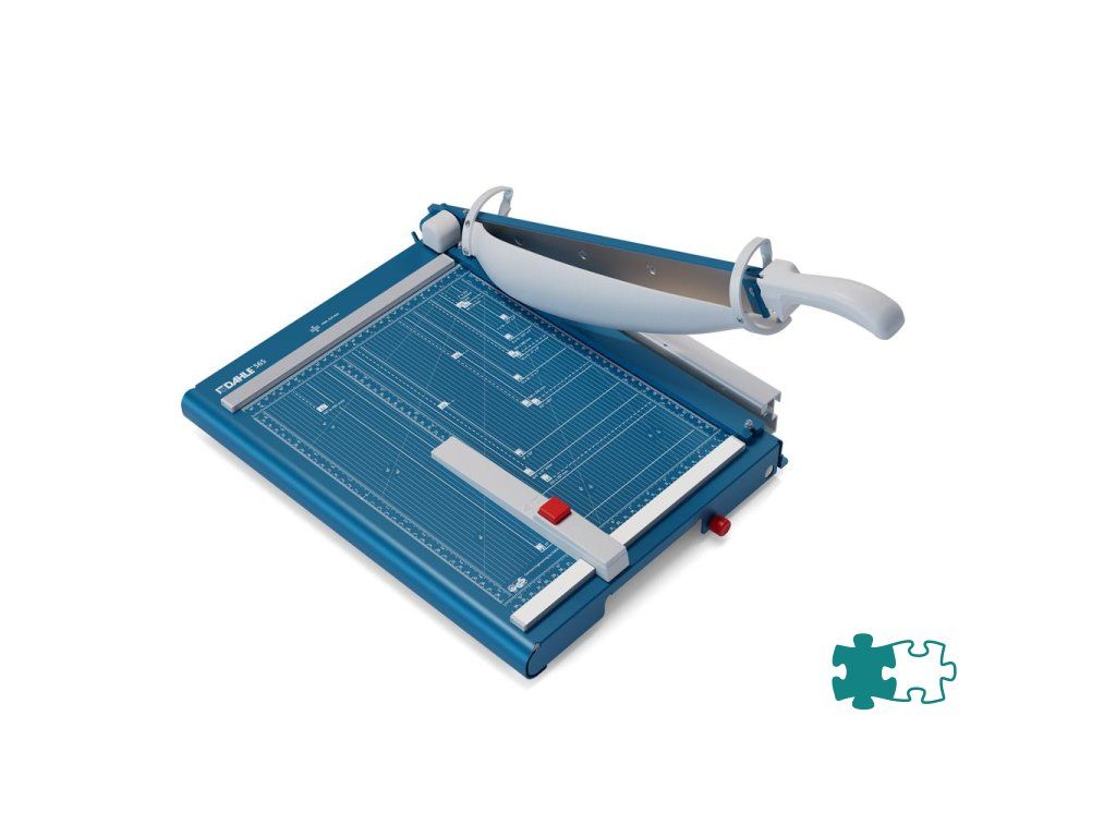 Veľkorozmerná, protišmyková a presná páková rezačka z pevného oceľového plechu. Základný vrchný a základný spodný brúsený nôž vyrobený z kvalitnej nožiarskej ocele Solingen. Rotujúci kryt okolo ostria chráni prsty pred náhodným porezaním. Presná mierka v cm/inch a DIN formátoch. Automatický prítlak. Model s výrezmi na pohodlné prenášanie, navyše vybavený predným dorazom, vysúvateľným do 170/185 mm. Pohodlná práca vďaka ergonomickej rukoväti optimalizovanej pre prenos sily zhora. Unikátny automatický ochranný kryt Dahle pre jasný výhľad na reznú hranu.Automatické upnutie pre optimálne jednoduché použitie.
