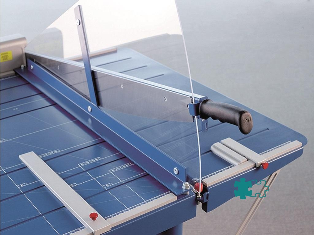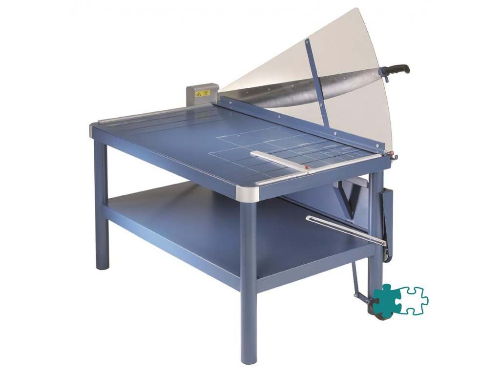 Veľká kovová robustná páková rezačka s vlastným stojanom a uzamykateľným nožom. Brúsený vrchný a spodný nôž z kvalitnej nožiarskej ocele Solingen, rozkladateľný bočný stôl, nožný pedál na zabezpečenie prítlaku rezaného papiera, priehľadný ochranný kryt ostria z plexiskla, 2 bočné dorazy, zadný doraz. Predný doraz, fixovateľný ručnou pákou, vysúvateľný do 275 mm. Mierka v cm/ inch, DIN formáty.K rezačke je možné objednať zariadenie na rezanie tenkých prúžkov a zariadenie umožňujúce vytvoriť laserový lúč, indikujúci reznú líniu.Dĺžka rezu: 1100 mm