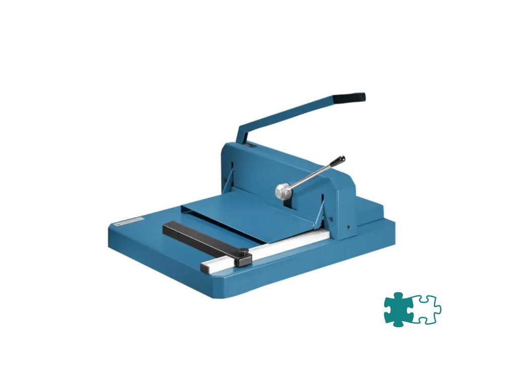 Profesionálna veľkokapacitná rezačka veľkej presnosti, rýchlosti a praktickej funkčnosti, vybavená vysokým stupňom bezpečnosti. Brúsený vrchný a spodný nôž z kvalitnej nožiarskej ocele Solingen, kovový bezpečnostný ochranný kryt, zverák papiera, bočný a zadný doraz. Nastaviteľný kovový doraz pre rýchle nájdenie správneho formátu. Minimálny rez 35 mm. Mierka v cm/inch a DIN formátoch. Voliteľné príslušenstvo stojan.Dĺžka rezu: 430 mm