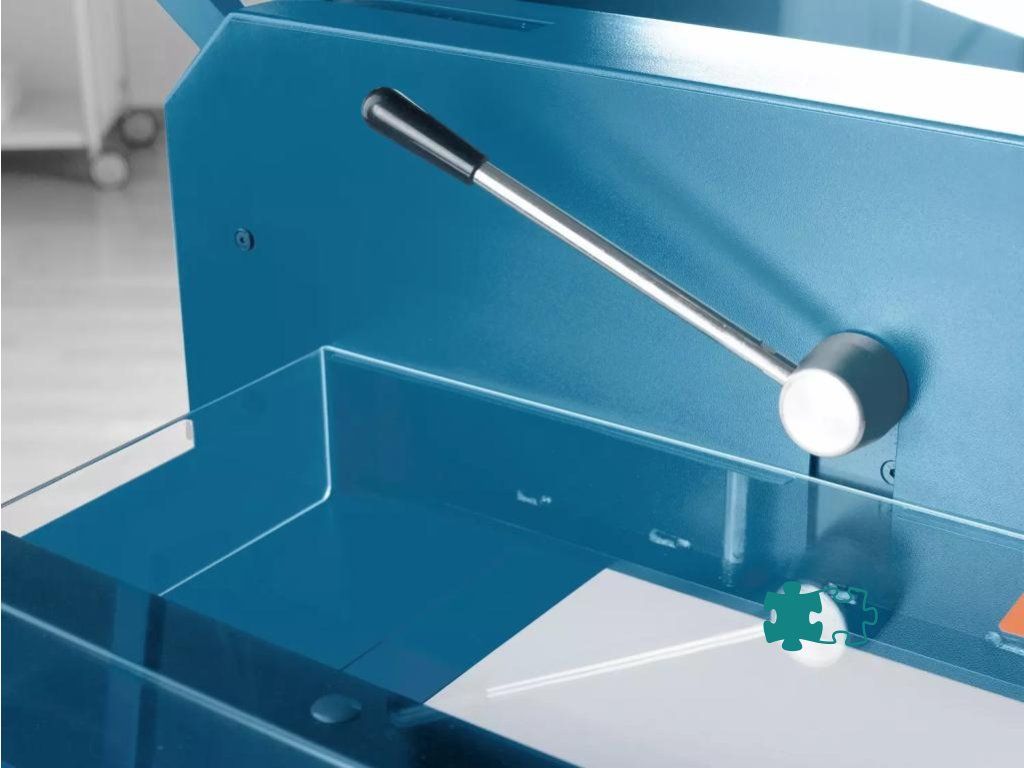 Výkonná a odolná veľkokapacitná rezačka veľkej presnosti, rýchlosti a praktickej funkčnosti, vybavená vysokým stupňom bezpečnosti, až na 600 listov papiera. Brúsený vrchný a spodný nôž z kvalitnej nožiarskej ocele Solingen, priehľadný bezpečnostný ochranný kryt, zverák papiera, bočný a zadný doraz, ovládaný kľukou. Minimálny rez 40 mm. Mierka v cm/inch a DIN formátoch. Vizuálny indikátor rezu pre profesionálne výsledky rezaniaPraktický stojan s odkladacím priestorom a optimálnou pracovnou výškou 74 cm je k dispozícii voliteľne (712)