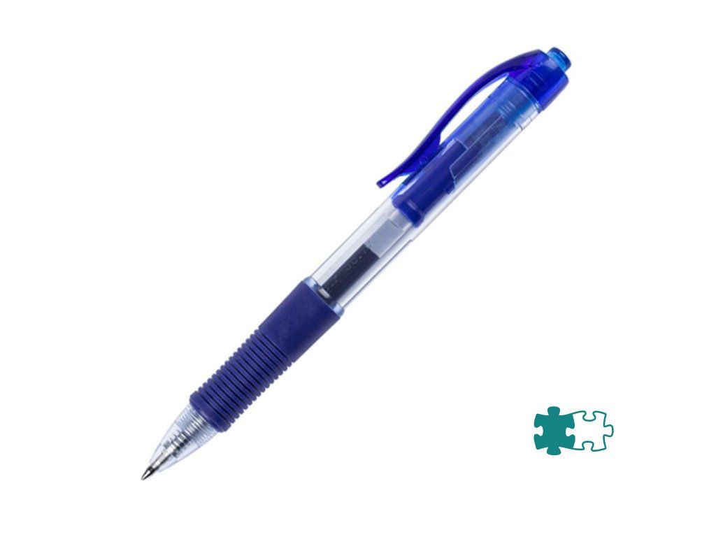 Klikací roller s robustnejším transparentným telom a gumeným úchytom. Farba tela vo farbe náplne. Guľôčka 0,7 mm, širka stopy 0,5 mm. Väčšie balenie 12 ks.Farba: modrá
