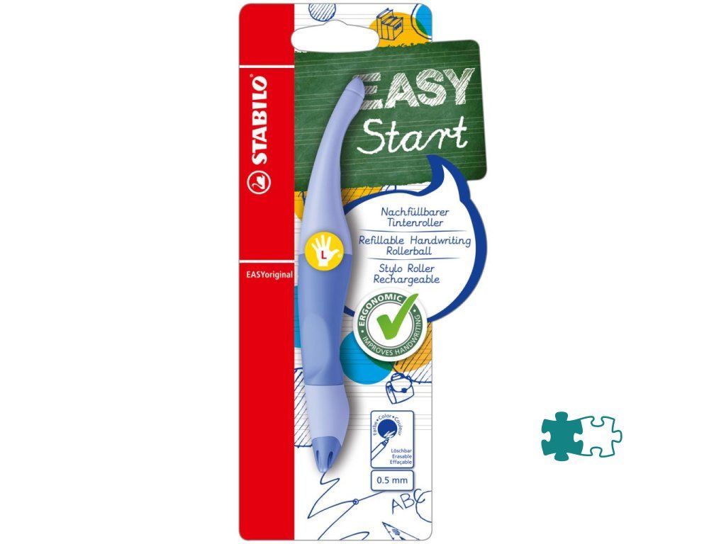 Ergonomicky tvarovaný roller, ktorý píše ako plniace pero. Prevedenie pre ľavákov. Vhodný pre deti, ktoré sa učia písať a školákov od 6 rokov. Uvoľnené držanie pomáha proti únave svalstva ruky a bolestiam pri písaní. Úchyt z nekĺzavého materiálu, nový hrot s každou novou náplňou. Plnený zmizíkovateľným atramentom modrej farby.Dodatočné parametre